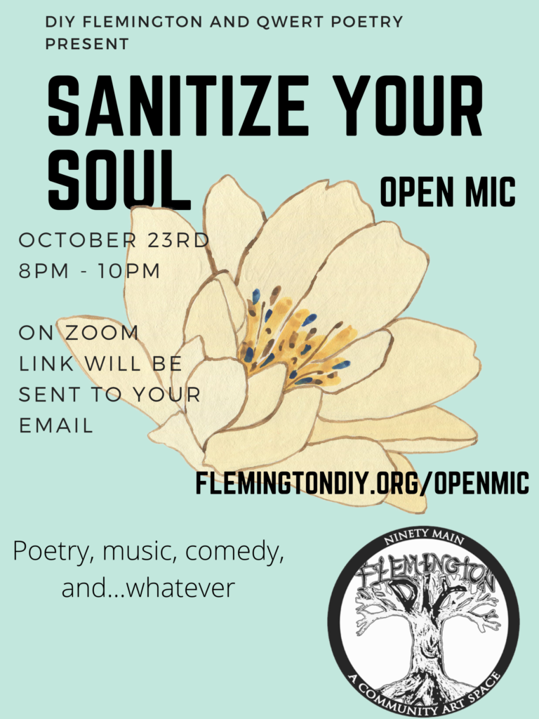 10/23: Sanitize Your Soul Open Mic III January 28, 2021October 7, 2020 by Flemington DIY Happy to announce our third virtual open mic! Info and sign up here!