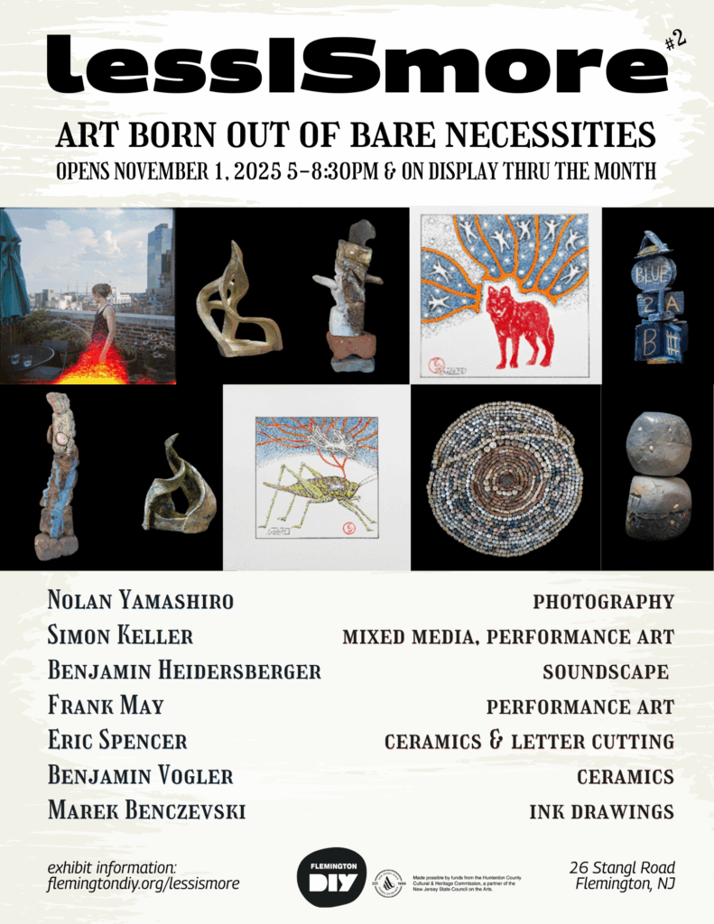 Frank May (frankmay.net) is an artist, gallerist, and educator. He considers all media his province. Frank is a member of artist groups MOVIS and Co11ective. He is the owner and curator of M Galleries (mgalleries.org), a network of art galleries and studios based in Washington, NJ. Frank has a degree in sculpture from Mason Gross School of the Arts-Rutgers, New Brunswick, NJ (masongross.rutgers.edu). He is currently on the faculty of The Center for Contemporary Art in Bedminster, NJ (ccabedminster.org) and CreateIT Labs (createitlabs.org).